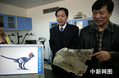 中新网北京3月10日电 (记者 孙自法)北京自然博物馆10日向媒体宣布,该馆古生物研究人员与北京大学和美国耶鲁大学、德克萨斯大学、阿克伦大学的科学家共同组成的研究团队,在世界上第一次完整恢复了一个小型兽脚类恐龙——赫氏近鸟龙的全身羽毛颜色。