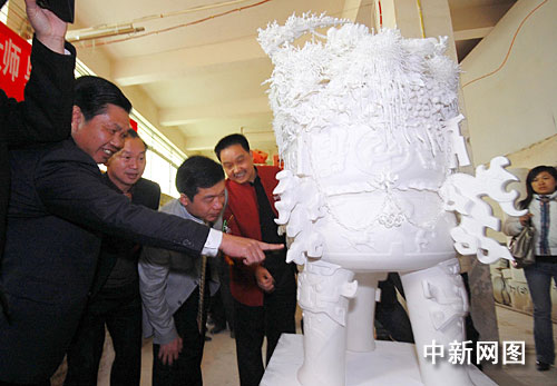 中新网德化3月10日电(林永传 张晴雯) 记者10日下午从福建省参与2010年上海世博会筹备委员会办公室获悉,“中国瓷都”福建德化大型中国白瓷雕作品《奥运和鼎》将在上海世博会福建馆展出。