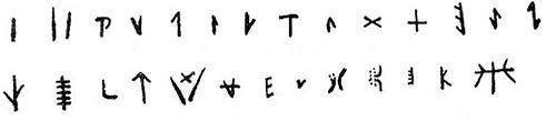 由于先民所处的环境不同,生活方式不同,反映出的文字面貌客观上是很不一样的。同样是为山造字,两河流域的丁头字用三个不连属的山丘表示,埃及圣书字用两个连属的山丘表示,甲骨文用三个连属的山峰表示。