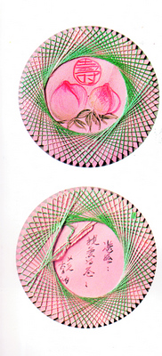 1954年,毛泽东61岁生日。女儿李讷想亲手为父亲准备一个礼物,她想来想去,最后决定做一个书签。书签是用丝线在圆形的硬纸片上编织而成的,正面画了两个大寿桃,写了一个大大的“寿”字,反面写着:送给亲爱的爸爸 女儿李讷。