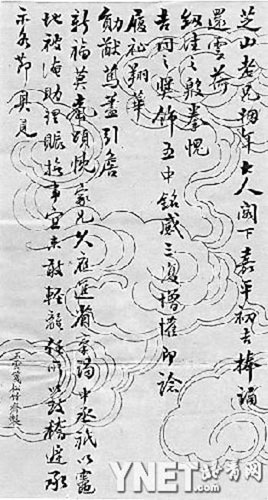 这是一封用四页彩色信纸写成的家书。此信采用松竹斋特制的云纹笺纸,色彩明丽,纹饰精美。松竹斋是荣宝斋的前身,始建于清康熙年间,主要经营文房四宝、信封、笺纸等。松竹斋笺纸深受清代官员、文人喜爱。写信人福堃,又名沈堃,道光年间著名文人,擅长书画,著有《三十六鸳鸯词馆诗词钞》四卷。收信人芝山,即嘉庆十六年状元蒋立镛(1786-1847),字序东,竟陵(今湖北天门)人。曾任翰林院修撰、国史馆纂修、翰林院学士、朝考阅卷大臣、内阁学士等要职。善书法、收藏,著有《香案集》。从信中来看,两人为姻亲关系,芝山帮助福堃的兄长谋取官职,福堃去信致谢。
