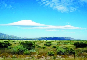 罕见的荚状云,是气流在山脉中流动时形成的波浪状云。有些人把这种看起来扁平而椭圆形的云误当成是不明飞行物。这图中的荚状云是近期在新墨西哥州西南部拍摄的。