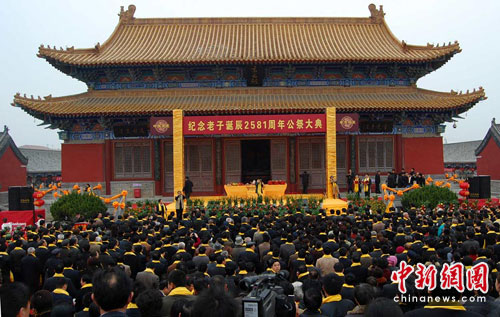 中新网鹿邑3月30日电 (记者 曹铮 通讯员 蒋保庆 沈力) 3月30日,是我国古代伟大的思想家、哲学家、道家学派创始人老子诞辰2581周年纪念日。当天上午,在老子故里河南省鹿邑县明道宫玄元殿前,纪念老子诞辰2581周年公祭大典隆重举行。