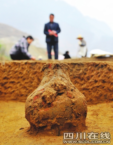 从现场看,这处工地位于环湖公路和瀑布沟水库之间的坡地上,遗址已被分割成条块,近百名工作人员正在埋头清理现场泥土。