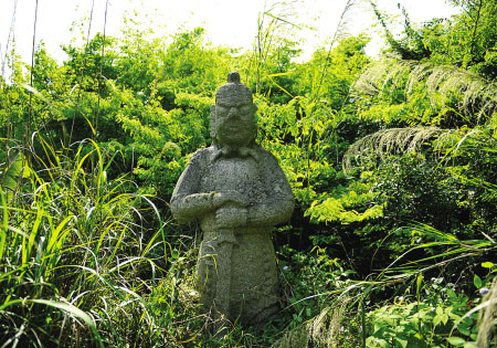 从发现的神道碑上,小陈判断出墓主人为明代人士陈果庵先生。不仅如此,他发现神道碑下方左右两侧,还分别有文官武将的石像,而往神道碑上方望去,隐约可以看到有2根小石柱。