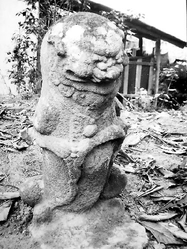 这尊被遗弃的石狮高约0.8米(不含底座),长、宽分别为0.4米,与一般石狮不同,这尊石狮大约雕刻于明代,造型奇特,呈蹲狮欲立形态,威武庄严,栩栩如生(左图)。据介绍,这尊石狮是1975年和溪镇围溪造田时从河里打捞起来的,当时捞出来的还有一对石狮,后因年代久远,那对石狮不明去向。在不久前的一次普查中,这尊珍贵的石狮才重新被发现。