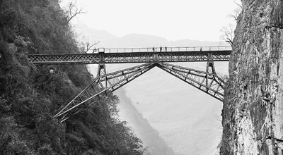 位于屏边苗族自治县境内的“人字桥”是一座大型单轨钢架铁路桥。从建成至今,历经百年,每天都在承受火车来回碾轧,却没有撤换过桥上任何一样基本部件。2006年,“人字桥”被国务院公布为“全国重点文物保护单位”。