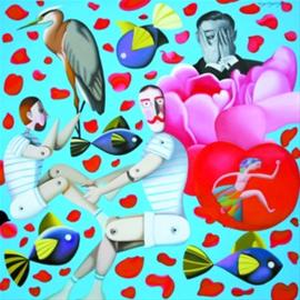 1956年出生,现为上海师范大学美术学院教授、中国美术家协会会员、中国油画学会理事、上海美术家协会常务理事的王向明,已经是香港苏富比的“老朋友”了,此前曾获全国青年画展金奖、全国美展银奖、台湾“隔山”大奖赛优秀奖等等,作品为中国美术馆、上海美术馆、福冈美术馆以及海外私人收藏的他,是这次作品参与拍卖的唯一一位上海画家,而在50多件现代拍品中,《向大师致敬·波波永远爱心荡漾》是苏富比在“严密”关注他的创作动态的前提下,最终选中的一幅作品:“上海其实一直都有文化渊源,人才辈出,但在文化市场上却比较弱势,周立波的脱颖而出对我启发很深,我们不能太谦虚,要表现强烈的海派风格,推崇上海文化、文明,这也属于上海的艺术家之间的惺惺相惜。 ”