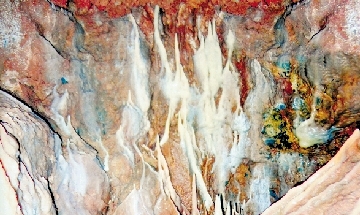 为一探究竟,他们用绳子吊着来到洞下,一看惊呆了,里面自然形成的熔岩造型千奇百怪,晶莹剔透,五彩斑斓,巧夺天工,好像进入了另一个世界。