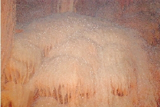 由于压力减小,二氧化碳散失,水分蒸发,使已过饱和的、含碳酸盐类物质的水,重新在洞穴内沉淀、结晶,附生在洞顶、洞壁和洞底上。由滴水从洞顶下滴生成的称“钟乳石”,由洞底向上生长的称“石笋”,两者相接的称“石柱”;由流水从洞顶下悬者称“石带”、“石旗”,从洞壁流下者称“石幔”、“石瀑”、“石盾”,在洞底生成的称“边石坝”、“石梯田”;由飞溅水生成的称“葡萄石”、“石蘑菇”、“石灵芝”、“石珊瑚”;由池水沉积的称“石花”、“月奶石”、“云盆”和“穴珠”等,因此,洞内沉积物的形态各异,奇特异常,加之地下水中还含有不同的矿物成分,沉积物就显得绚丽多彩。