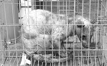 这一看不得了,婆媳俩备受惊吓,鸡圈里有一只体形如狗、浑身灰白几乎无毛的怪兽正撕咬她家的鸡,婆媳俩拿起棍子想把它赶走,但怪兽始终不退,婆媳俩不得不在大半夜找邻居帮忙,集众人之力用铁网逮到了这只大家伙。