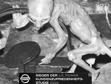 2009年8月,墨西哥电视台公布了一条令人难以置信的消息,2007年5月在该国的一个农场内,人们在一个动物陷阱里发现了仍然活着的外星人宝宝!德国《图片报》报道称:发现这名外星婴儿并将其溺死的墨西哥农民,在事发几个月后神秘死亡。报道援引一些其他UFO专家的话说,这起神秘的死亡事件很可能是外星人的报复行为。研究人员提取了外星婴儿遗体的一些组织、骨骼样品、毛发、皮肤样品去做DNA测试。3个墨西哥的实验室与一个加拿大的实验室都不能给出结果。
