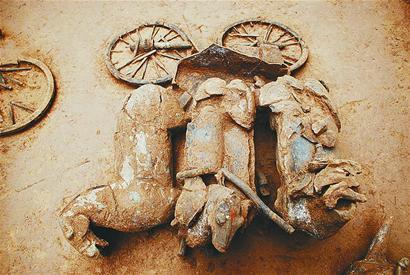 最让王守功感到振奋的是俑坑中的车马俑。他告诉记者,这次发掘出土的车马有单辕车、双辕车,这是山东境内第二次发现汉代陶车马俑,其价值在这批陶器中是最高的,就是在全国类似发现中也属于高级别的。为什么这么说呢?因为全国现已发掘的俑坑出土的陶马车不多,而那个时期的车马究竟是什么样的,都苦于少有实物资料。因为那个时期的车马陪葬实物基本都腐烂了,一些俑坑中的木制车马模型也都是腐坏的,所以那个时期的车马的形制一直不很清楚。而且以当时的条件,陶车马制作起来并不容易。此次出土的陶车马有的部件保存得很好,这样我们就可以了解当时的真实车马的样子,对研究当时的马车制作工艺和礼制有非常重大的意义。而且,齐国是汉代早期最大的诸侯国,而西汉时期最大的事件就是“七国之乱”,当时很多诸侯国君都想僭越,而这次出土的车马俑显示出的级别非常高,应是王侯级的,这与当时的僭越之风有没有联系虽然还需要深入研究,但所反映出的情景几乎就是那个特定时期风气的再现,这对研究西汉早期到中期齐国的葬俗和礼制有巨大价值。