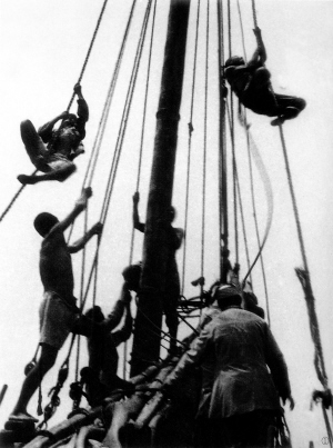 军党委扩大会议,进一步坚定了依靠木船渡海作战的思想。一场海上练兵的群众运动,热火朝天地展开了。军师领导机关和团营指挥所都移到海边,搭起草棚,同战士一块学,一块下海。大家千方百计地搜集有关海洋知识和海战史料,访问被称为“特约顾问”、“活气象台”的老渔民、老船工。就连旧书摊上无人过问的清朝海军提督的《航海手册》和《潮汐表》,也买了来研究参考。滩头、海上,到处是课堂。打秋千,走浪桥,练摇橹,学掌帆。“要做大海的主人”这句话,响彻每个角落。指挥员们吃着饭,也把筷子往碗里一插当帆船,以饭桌当海,研究起航海队形来。许多人带病参加海练,劝不了拦不住:经过一个多月的艰巨努力,日夜苦练,部队中基本消除了晕船的现象,学会了一套海上行船的本领。这种奇迹使许多船老大惊叹,他们竖起大拇指说,“毛主席的大军真是神兵!神兵!”