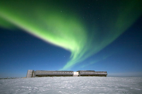 美国阿蒙森-斯科特南极点考察站所在处距离地理上的南极点约100米,并以约每年十米的速度向南极点漂移,是目前南极大陆上最大的考察站。站内可容纳150 名科考及后勤工作人员。整个考察站外形像一对机翼,底座同样采用支架设计,由36个液压千斤顶基座提供支撑,主题建筑距离雪地表面10英尺左右。这种设计可以加速吹过底座的南极风,有效防止考察站周围出现积雪堆积。如果有需要时,该考察站还可以向上升高10英尺左右。