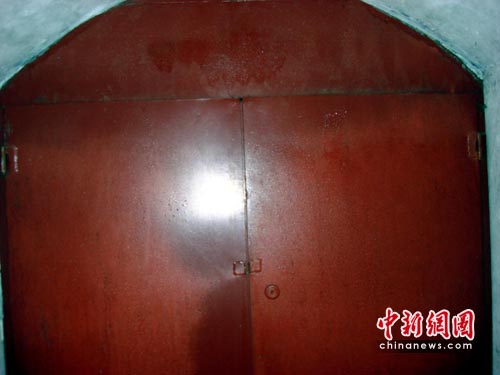 日前,记者听说少林寺在建造一座地宫,便前往一探究竟。这座传说的人造地宫,位于塔林西侧约50米处,门口由青石砌成。地宫的石门不大,高约1米,宽约0.8米,被一把铜锁锁住。通过石门约5公分的门缝往里看,只能看到里面漆黑一片。当记者用卡片相机伸进石门门缝拍摄时,里面又是一扇红色的铁门,右侧的墙壁上还安装有电源开关。