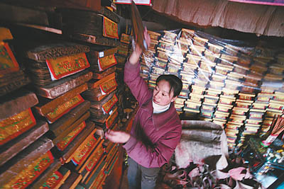 东仓家也搬到了结古镇,买下了一座两层的土房子。次成文青和东仓保毛一共有5个女儿,他们仅有的两个儿子在几年前相继去世。《大藏经》只是短暂地离开了他们一家的生活,没过几年,政府不再出资,大藏经被从银行里送了回来。它还是那副灰尘仆仆的样子,被装在163个麻袋里。