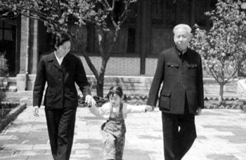 伟人们为了事业,付出毕生的一切,并没有给亲属后人留下什么物质财富,甚至连所有家庭都应有的温情回忆,也极其有限。历史就是历史,无法改变,更不能抹去;当事者的回顾总是带着浓重的个人色彩和不可避免的片面性;旁观者的记忆更随着境遇变迁因人而易。眼前,这一切已是“而今迈步从头越”。三代人的欢宴进行了两个多小时,录像机摄下了充满欢声笑语的一幕幕场景。妈妈和姨妈兴趣盎然,偶尔交头议论,不时插上几句,始终满意地笑着。银丝皓首的光美奶奶没有怎么讲话,慈祥而超然地看着孩子们,孱弱清癯的面庞上泛起红晕,显得那么幸福,那么美丽!
