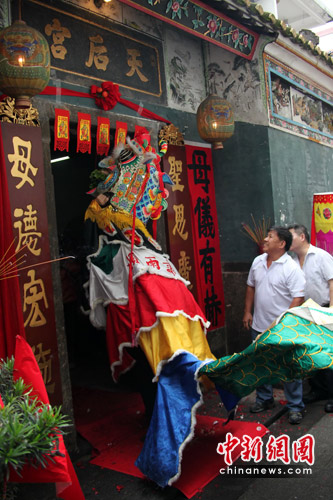 中新网深圳5月6日电(郑小红 李海友 邓小伟)今年5月6日(农历三月廿三)是“中华海神”妈祖诞辰1050周年纪念日,在中英街,村民们以敲锣打鼓、舞麒麟、贡祭品、招待八方来客免费品尝“九簋菜”等流传已久的民俗方式予以纪念,中英街关口排满了前来祈福的市民。
