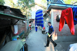 宿舍区的杂院有半个篮球场大,自建房将它隔出了三条通道,最窄处宽不过80厘米,有的平房顶上又加盖了房屋。市劳动人民文化宫主任武卫平介绍,目前宿舍区住着75户人家,常住人口约50户,分布在宫墙外、端门下。当年的单身职工多已发展成三代之家,自建房越来越多,4200平方米现在已有169间房屋。