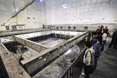 核反应堆大厅内,支架和空间堆芯保存完整,2001根核反应工艺管(俗称“燃料棒”)早已被取走,底座留有上千个圆形插孔。周围1米多宽的防辐射沟内,铺满重晶石沙,都是专程从云南运来。