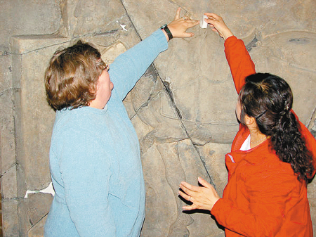 宾夕法尼亚大学博物馆首席文物保护专家琳·格兰特女士这两天很兴奋,一是中国文物修复专家的到来,带来了东方文物修复理念,二是中国专家带来的“昭陵六骏”残块石膏模型,竟与二骏中拳毛騧马鞍断裂部分非常匹配。格兰特女士激动地对记者说:这真是难以置信的成果,“二骏”来到美国快一百年了,它身上掉的另一块石头又找到,太让人高兴了。