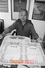 “这张海报有人出价万元,我都不舍得卖。”昨日上午10时许,见有人来访,50岁的李杰拿出自己最爱的宝贝——一张梅兰芳宣传画,这是新中国成立前印制的。宣传画上,京剧大师梅兰芳面带微笑,依靠在一张沙发上,宣传画的题词为郭沫若。“小屋墙壁上,都是精选出来的。在我家的保险柜里还有近千幅海报,各种各样的都有。”李杰说。