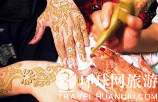 土耳其人结婚要举行的另一项仪式是“染指”。“染指”一般在晚上举行,由新郎的嫂子或媒婆把新娘的右手或双手的手心和手指染成石榴红色,以示吉庆。有的地方也为新郎染指,但只染左手小指。据说颜色染得好坏,预示婚后生活是否美满。新娘在“染指夜”要更换几套新衣和烧掉一件旧衣,表示新生活开始。参加染指仪式的女友们要边哭边唱有关“染指”的民歌,表示依依惜别之情。
