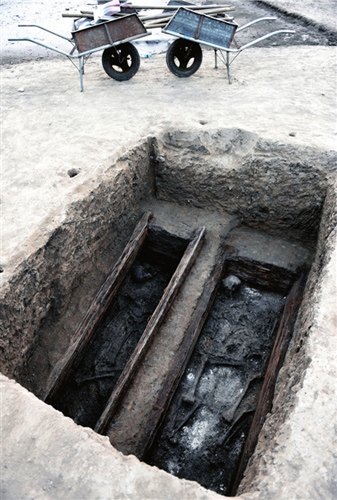 市文物局文物保护处处长王玉伟介绍,今年4月1日起,丽泽商务规划区地下进行古代遗址与古代墓葬考古调查勘探发掘,现已清理出3处80米长、宽10米的大型建筑基址,设有前后廊。尽管挖掘刚刚开始,但王玉伟表示:“可以肯定的是规模比较大,比较罕见。”目前,现场正在清理挖掘出来的渣土,遗址区几处探坑内可清楚地看到遗骨、砖井等。