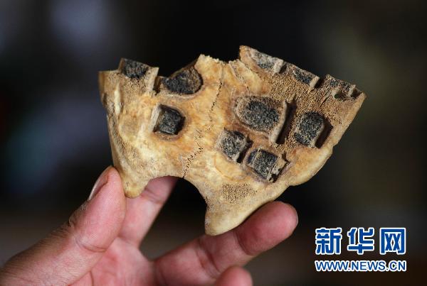 这是6月6日拍摄的洛阳市林校西周洛邑祭祀遗址出土的卜甲碎片背面。