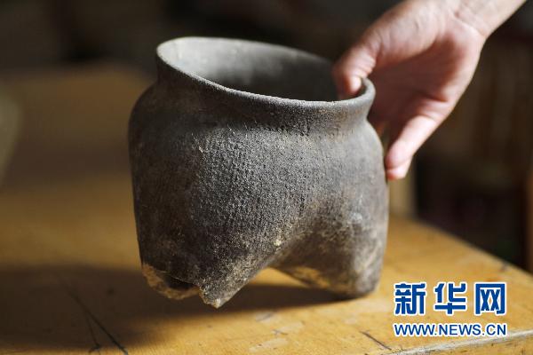这是6月6日拍摄的洛阳市林校西周洛邑祭祀遗址出土的西周早期陶鬲。