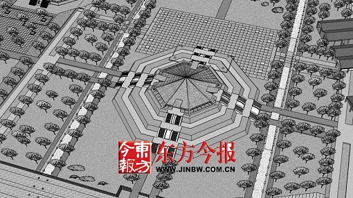 郭黛姮说:明堂建筑为一层建筑,根据遗址现场的考古报告显示,明堂是中心柱和八边形建筑。此次设计中,明堂将仍采用八角攒尖屋顶。
