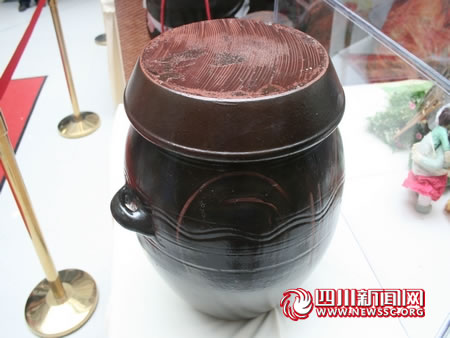 6月20日下午,在成都举办的“炫动之旅2010韩国旅游风情展”上,四川新闻网记者终于一睹“韩国泡菜坛”的真容。据韩国旅游发展局李洪根课长介绍,这个“韩国泡菜坛”是货真价实地从韩国运过来的,这种形状的坛子可以说是“韩国泡菜坛”的代表,大多数韩国的普通人家都使用这样的坛子存放韩国泡菜,价格大概在人民币200元左右。