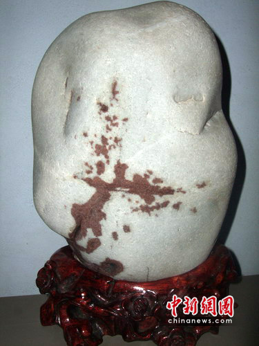 中新网成都6月22日电(邱萍)“迎雪吐艳,凌寒飘香”的梅花象征坚韧不拔,不屈不挠,奋勇当先,自强不息的精神品质。22日,记者在四川宜宾市民蔡建华家中看到一块奇石,其上图案宛若红梅傲雪。