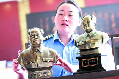 7月1日起,湖南省生产、销售的毛泽东工艺塑像,只能用不饱和聚酯树脂、铜合金和银三种材质制作,禁止采用石膏、塑料和杂铜,质监、工商等执法部门将对违反者进行查处。昨日,省政府就《毛泽东主席工艺塑像》地方标准的实施举行了新闻发布会,副省长刘力伟出席会议。