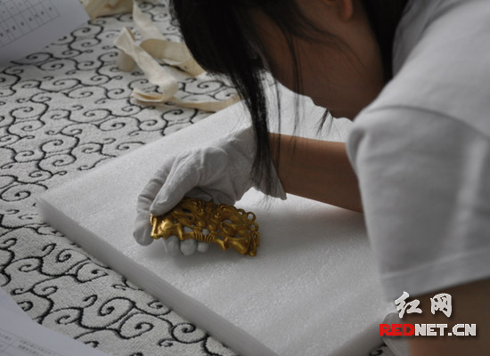 将来长展出的人物双狮纹金饰牌,器物之精美,令人惊叹。