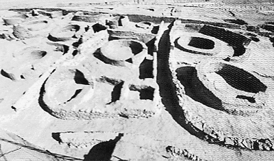 考古人员在遗址上发现了连续的牛蹄印、河沟、堤岸、灌溉水渠和种子等遗迹,还有住宅、墓葬和造型精美而奇异的艺术品,无不说明着这里曾经达到的农业文明。