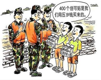 小哥俩8岁时遇上九八抗洪,他们用自己的压岁钱买了创可贴送给大堤上的官兵。华老听说此事后撰文给《讽刺与幽默》,对张依、张尔大加赞赏,并寄去我漫画的剪报。