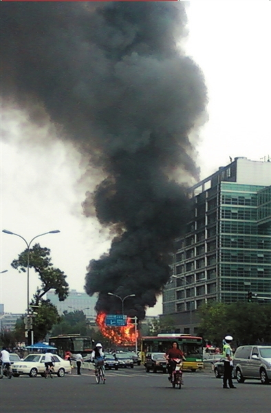 工商银行总行院内起火 火苗蹿起三层楼高(组图)(3)
