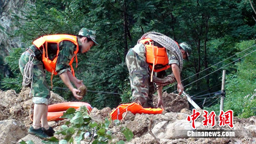 中新网万源7月21日电(李丹丹 李发波 记者刘忠俊)记者21日从四川万源市大竹河镇临河村白杨溪电站滑坡搜寻现场获悉,山体垮滑现场已找到一具遇难者,还有8名遇难者没有踪影。