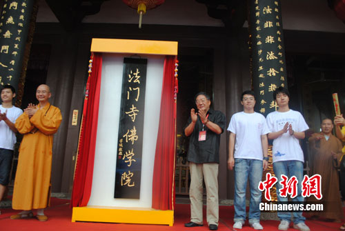 原陕西省人大副主任巩德顺和中国佛教协会副会长学诚大和尚为法门寺佛学院揭牌,宣布法门寺佛学院正式成立。(完)