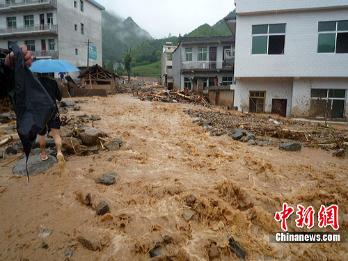 中新网西安7月27日电(记者 冽玮 通讯员何衍贵)7月24日凌晨2时许,地处陕西省南部的商洛市丹凤县竹林关镇遭遇山洪、泥石流袭击,洪水退去后,原来平整的街道被厚度近2米的淤泥覆盖,十吨以上的山石随处可见。截至7月26日,暴雨致使该镇失踪9人死亡1人,经济损失目前尚无法估计。
