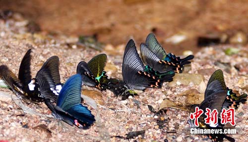 中新网韶关8月5日电(李凌 刘加青 刘倩)仿佛是为了庆祝申遗成功,近日,广东丹霞山景区生态旅游路段,出现了千百只蝴蝶谷底翩飞的绚丽奇观。