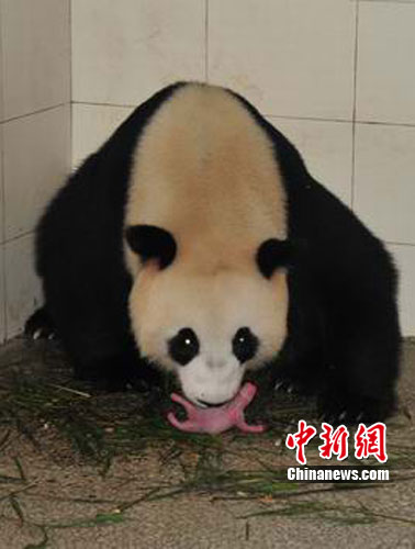 10日清晨,经过专家鉴定,“格格”仔系雌性,出生体重159克,各项生理指标正常,目前在“格格”怀里已经喝到了初乳。(完)