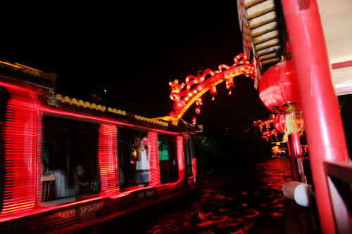 浪漫七夕 网媒记者夜游桨声灯影里的秦淮河(图)(5)