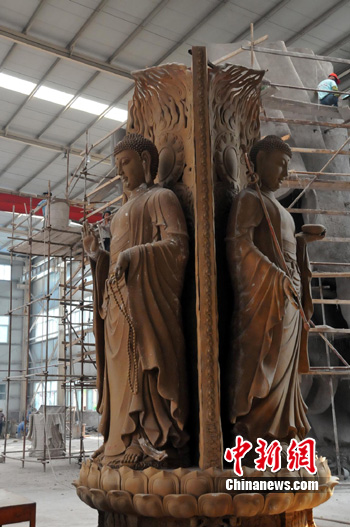中新网洛阳9月17日电(马守国 李建平)记者今日从中铝洛铜集团获悉,继四面佛铜像之后,又一尊三面药师佛铜像在洛铜集团正式开铸。