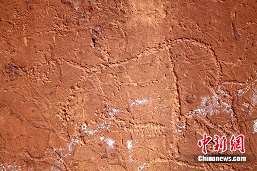 “从外形看这些岩画群均为红岩石上作画,被风化、垮塌所暴露,其中一些体积较大的岩画一面有图案,一面如刀切般光滑,多为牛、鹿、羊等动物图案,隐约有植物化石嵌入的痕迹。”杨延龙告诉记者,这些精美的岩画是古代哪个民族所创作,目前还不清楚,但已列入了当地政府的保护计划。