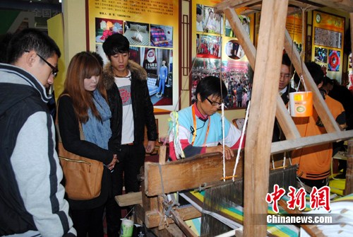 徜徉杨凌农高会其间,记者看到,1日至3日,100名妇女手工艺能手集中亮相杨凌农高会,参加陕西省第二届妇女手工艺品技能大赛。在人气最旺的一架架老式的织布机前,梭子、彩线在妇女们手中跳跃,彩条、方格、提花、柳条等各色土布就这样一点一点“长”出来,赚足了观众的“眼球”。