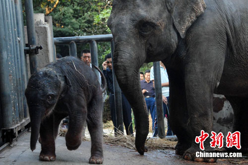 中新网深圳11月25日电 (郑小红 郑朝伦 黄显达)11月25日16时05分,深圳野生动物园大象馆,一只雄性小亚洲象在象妈妈肚里怀了20个月后,终于赶在感恩节的下午顺利诞生了,=小象出生时体重100公斤左右,非常健康。
