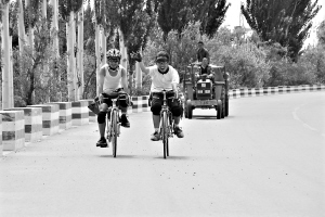 一路上,两个人的车胎都爆了好几次,有时不得不在39℃高温天气下挥汗如雨地补胎。苏景勃认为,爬黄土高坡的经历最难忘:一边是炎热的天气,一边是拉肚子虚弱的身体,而内心的恐惧又增加了爬坡的难度。“黄土高坡,我们爬了两天,总共8个大沟”。